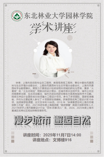 • 园林学院举办学术讲座|漫步城市 邂逅自然