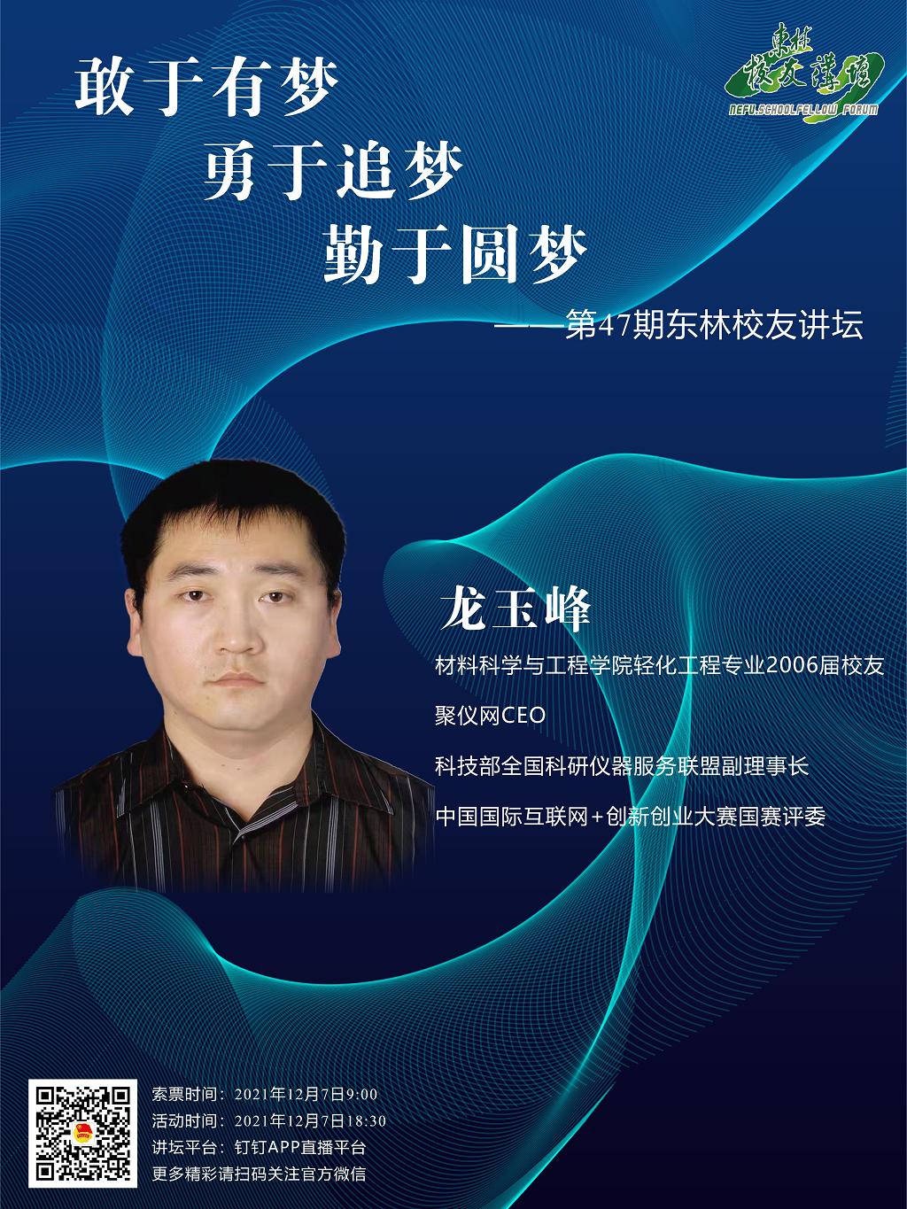 龙玉峰校友的分享会,欢迎广大师生参加!