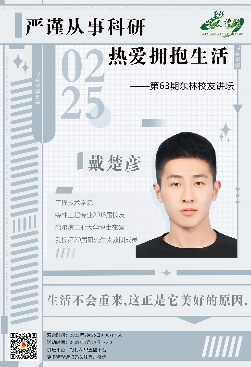 本次论坛,戴楚彦校友将结合自身发展经历和每一次求学期间的人生选择,为我校同学讲述工科博士的多彩生活。