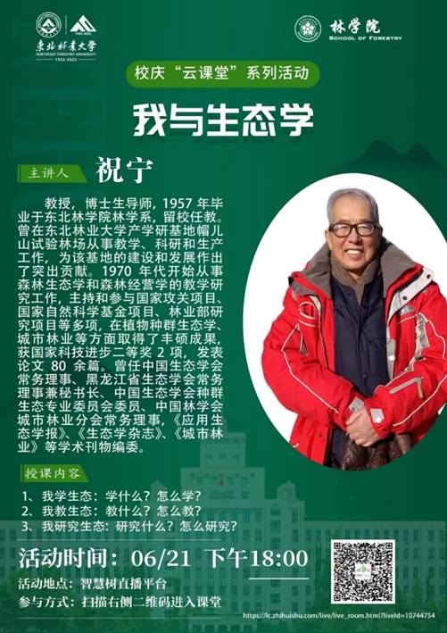 为喜迎我校建校70周年华诞,传承东林使命,赓续林学精神,林学院特开展喜迎建校70周年校庆“云课堂”系列活动。旨在为校友们搭起与母校联络感情的桥梁,重温曾经在校的温暖时光,追忆当年的青春岁月,师生共同述往思来、共谱芳华。同时,启迪在校师生以昂扬向上的精神风貌迎接70年校庆,继往开来,再谱新篇。