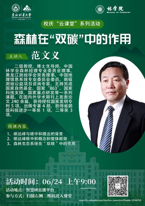 为喜迎我校建校70周年华诞,传承东林使命,赓续林学精神,林学院特开展喜迎建校70周年校庆“云课堂”系列活动。旨在为校友们搭起与母校联络感情的桥梁,重温曾经在校的温暖时光,追忆当年的青春岁月,师生共同述往思来、共谱芳华。同时,启迪在校师生以昂扬向上的精神风貌迎接70年校庆,继往开来,再谱新篇。