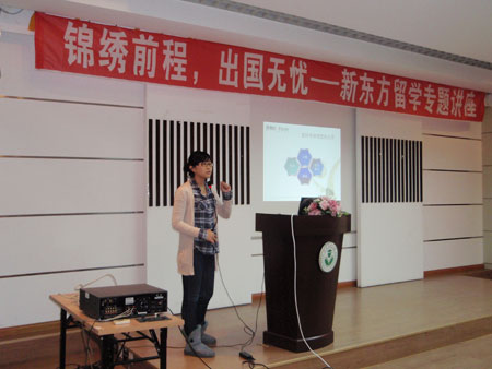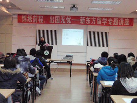 12月12日晚,由研究生部科技创新中心主办的第十九期“Journal Club”在我校研究生楼709顺利举行。来自新东方的资深留学顾问王娜和李维老师对留学英美等国的相关信息进行了详尽的介绍和讲解,并在现场和同学们进行了广泛而热烈的交流。