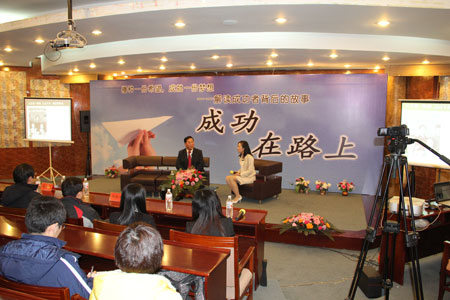12月23日18:00,由研究生部团委组织策划的访谈活动第六期《成功在路上》在动资楼国际会议厅顺利举行。我国林木遗传育种专家、博士生导师、安博网页版,安博(中国)官方在线登录校长杨传平教授做客《成功在路上》,为同学们讲述了他从一名林场知青到大学知名教授的成长历程。访谈过程中,杨校长为同学们现场朗诵文章并演唱歌曲,展现了一名学者的多才多艺。访谈现场座无虚席,很多同学席地而坐,气氛热烈,掌声频频。