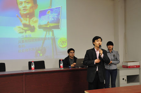 方博同学讲述了他作为大学生是如何开始创业、如何面对在创业过程中的困难等问题。仝长刚先生针对大学生这个普遍而又特殊的群体,以过来人的身份讲述了应该如何正确对待创业选择。他指出创业的三要素:团队、项目、资金,他希望同学们要合理地进行自我定位,培养自己的沟通能力、营销能力和资金掌控能力。同学们听完两位嘉宾的观点后,又与嘉宾进行了相关问题的辩论:在当代的形势下,中国的大学生要不要创业?应该怎样面对创业?讨论现场严肃而热烈,最后仝长刚先生把创业比喻成盖房子,他说盖房子需要地基,大学生不应该轻易创业,应该多到图书馆学习,在大学生活中积累知识,积累创业智慧。