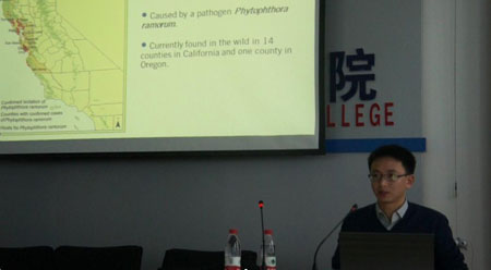刘德胜教授首先就近年来遥感技术在监测森林干扰的应用入手,介绍了利用遥感技术进行森林资源动态监测的目标、基本途径、各阶段的主要问题及解决方法,然后结合刘教授的科研项目以林火和病虫害为例介绍了利用遥感技术进行林火损失评估和病虫害损失评估的过程和关键技术,由浅入深,发人深省。然后介绍了利用遥感监测地表覆盖变化监测问题,主要介绍在俄亥俄州东南部地区利用时空模型对进行土地覆盖变化检测研究项目的关键问题上,说明了时空模型在结果验证和筛选过程中的显著效果。最后介绍了利用遥感和空间统计学方法进行森林病虫害传播途径及过程的时空模拟。以加利福尼亚州橡树大面积死亡的原因分析为切入点,模拟死亡橡树时间动态及空间分布和橡树死亡率的空间分布,进而来探究导致橡树大面积死亡的病虫害的传播机理。报告内容丰富,丝丝入扣,引人入胜,进行了系统、细致而全面的介绍,内容精彩,理论研究紧密结合实际应用,思路清晰。信息学院学术报告厅内座无虚席,不时响起阵阵掌声,讲座受到了广大师生的热烈欢迎。(李瑞改)