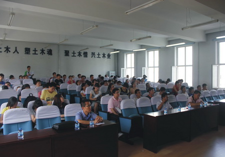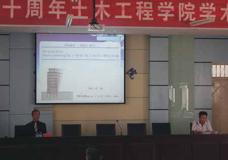 卞沆龙博士从70年代开始致力于工程结构的纠偏加固新技术开发,他发明的钢管灌注桩反力顶升技术(简称PR技术),适用于建筑物、构筑物和桥梁结构,整个加固过程中不影响结构的正常使用,无噪音污染,所用设备轻便,能够在狭小空间内进行施工,并具有“开拓地下空间”的用途,符合当今对施工技术环保无污染的发展趋势。因此,该技术在韩国、日本、美国及中国等国家得到实际应用,获得了工程界的认可。卞沆龙博士通过大量详实的工程实例图片和工程录像,深入浅出地介绍了钢管灌注桩反力顶升技术的适用条件、关键技术节点、施工过程等。报告内容丰富,深受师生的喜爱,会场不时响起热烈的掌声。