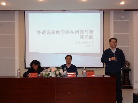 束教授首先介绍了当今外语教学中所存在的种种问题,继而提出了解决这些问题的方法,最后,束教授针对目前外语教学理论研究不足这一现象,向老师们建设性地提出了在教学的哪些方面可以进行立项研究的建议。在报告结束后,束教授与教师们进行了亲切的交流,回答了教师们所提出的问题。报告会在教师们热烈的掌声中结束。