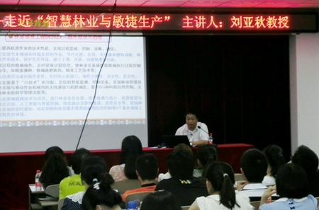 整场讲座在刘教授的悉心讲述和同学们的认真聆听中顺利举办。老师首先就林业生态建设的学科内容为大家普及了基础知识,并结合了现阶段日新月异的信息技术为同学们跨学科的阐释了“云计算,物联网”这两个让我们“云里物里”的时髦且前沿的词语的含义,并指出了我国的林业信息工程要如何建立其自身的科技化信息平台,以满足数字林业“三个系统一个多样性”的产业需求。在此基础上,刘教授又针对我国林业机械技术的现状,在引进国外先进技术的同时,为日后林业智能装备的开发,高效率节能设计的敏捷化生产,提出了宝贵的建议。