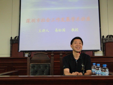 7月12日至16日,深圳大学法学院社会工作系教授、深圳市社会工作者协会副会长、深圳市鹏星社会工作服务社理事长易松国来我校为社会工作专业师生进行了社工学术与实务的讲座和培训。为期5天的交流围绕我国社会工作教育与实务的现状、深圳社会工作的创新举措、社会工作者的培养、社会工作职业化发展等多方面内容展开,使我专业师生获得了大量前沿信息,对我校社会工作的教育、实务以及社工毕业生就业等多方面产生了积极影响。