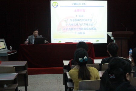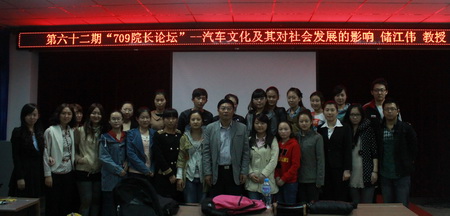 汽车发明改变人类生活,汽车文化绽放绚丽光芒。2013年9月24日晚18时,由研究生院团委主办的第六十二期“709院长论坛”——“汽车文化及其对社会发展的影响”主题讲座在研究生楼004室隆重举行。交通学院院长、博士生导师储江伟教授针对“汽车的文化内涵 ”、“汽车技术进步的主要标志和汽车技术发展的未来趋势”等多个方面与大家畅谈感悟。