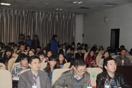翟雪峰处长对我校实施的考试方法改革实施方案解读后,本次论坛进入交流畅谈阶段。到场同学对我校实施的考试改革持赞成与反对两种意见 ,尽管有些观点交流近似交锋,但到场同学针对目前教学中存在的课程设置、课程讲授质量、考试方法、学生的自主、创新与考试的冲突等问题一一大胆地提出自己的看法,他们经过深思的发言,博得大家的阵阵掌声。教务处四位老师针对同学们提出的种种疑问都一一耐心地进行了细致解答。接下来,主持人引导在座的同学代表为考试方法改革建言献策,翟处长对于同学们敢于质疑的精神与日渐成熟的思考给予了热情的赞赏和肯定。同时,他说,考试的目的希望对学生的综合素质培养与提升起到导向作用,今后考试方法改革在践行中将会不断完善,继续以课程为平台,以考试方法改革为抓手,推动教学方法和教学内容的深化,采用多样化的考核评价机制,注重个性化的发展,不断克服“一考定成绩”的弊端,本着通盘、整体的考虑,实现以教为主向以学生为主转变、以课堂为主向以课内外结合转变、以结果评价为主向结果过程结合转变,最终体现以学生为本的改革宗旨。
