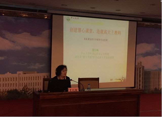 为进一步促进教师教育教学理念转变和教学方法改革,提高课堂教学质量,实现“以教为中心向以学为中心”的转变,2016年4月14日下午,校教师教学发展中心特邀请中山大学外国应用语言学教授兼湖北省“楚天学者”华中农业大学主讲教授—— 夏纪梅教授做客名师大讲堂,做了题为《创建慧心课堂,造就高大上教师——依托课堂的大学教师专业发展途径与策略》的精彩报告。本次报告会有240余名教师参加,由教务处副处长刘志明主持。